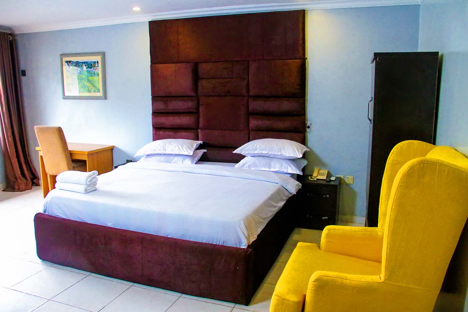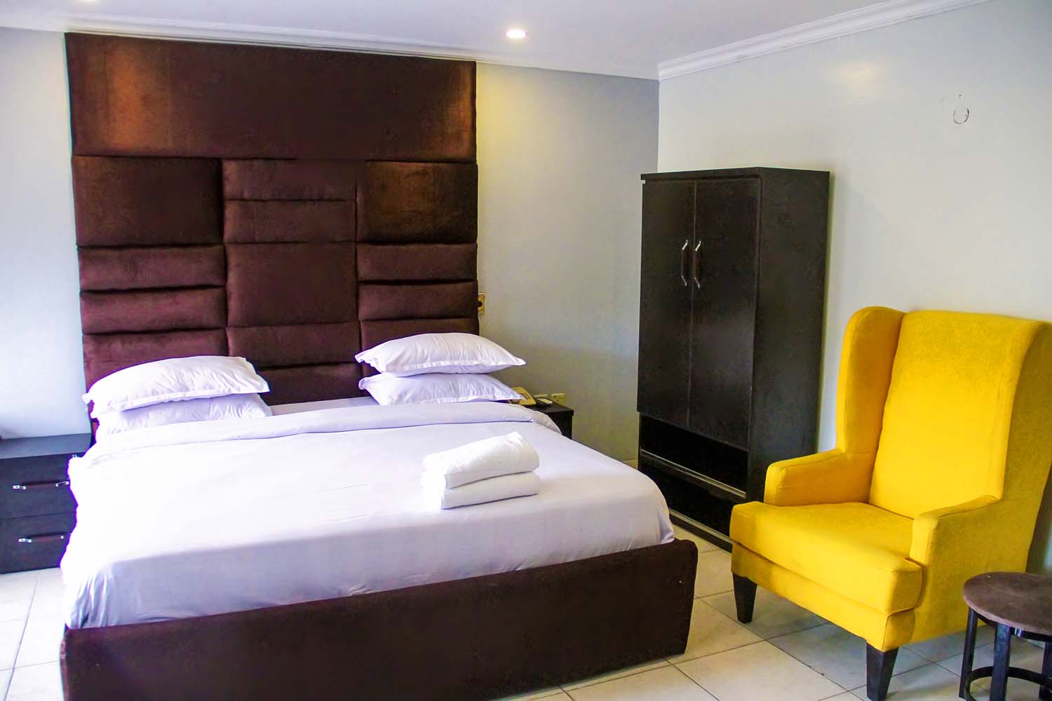 The Standard Deluxe is a private room, designed for a single guest or a couple. This room differs from a standard room with the amount of furnishing in the room. In comparison with other hotels in Warri, the standard deluxe room is tastefully furnished for a room of its size.